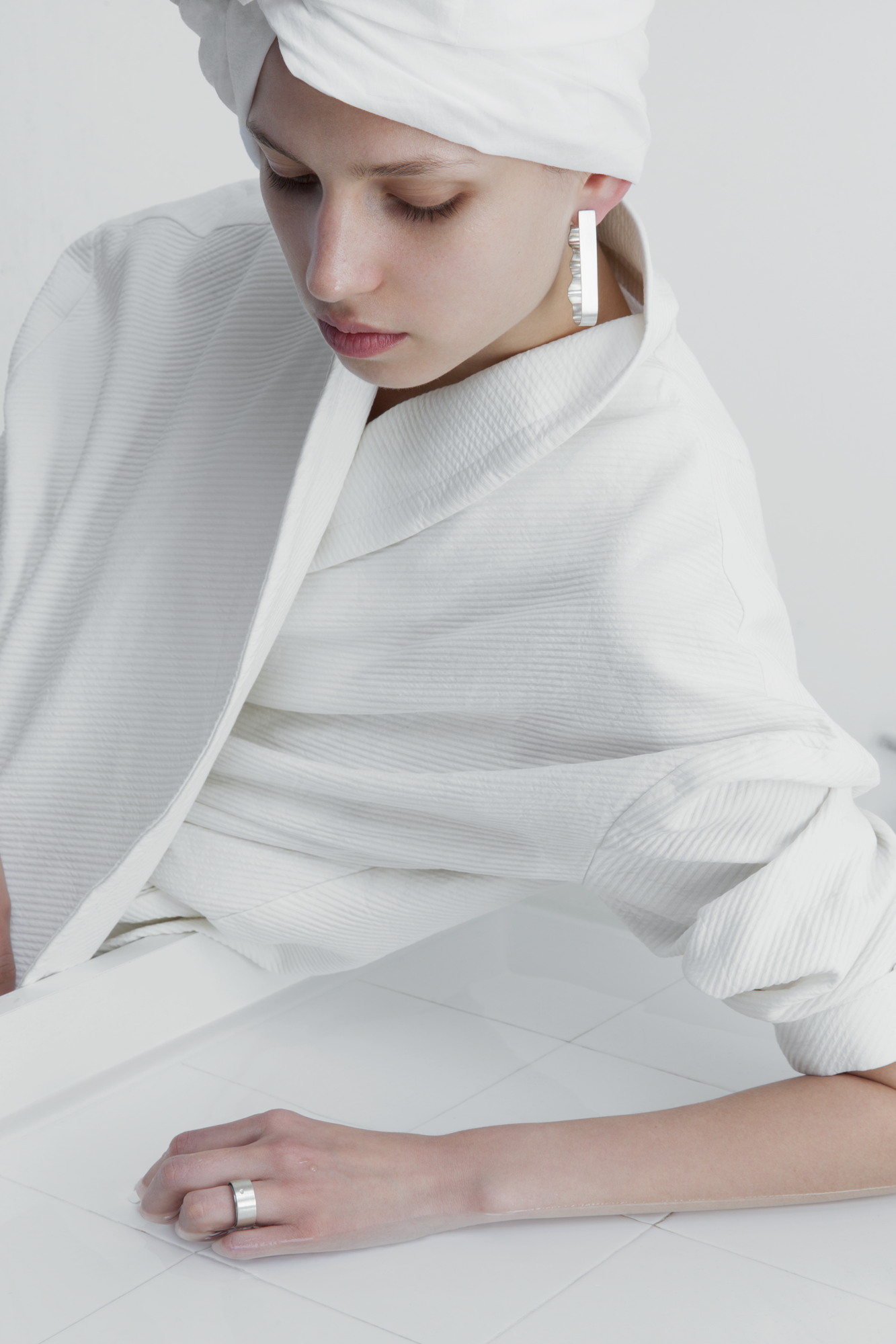 With the earrings, the rigor of the pair comes undone. A single earring makes enough sense, or can be fluently combined with any other earring from Sine series.